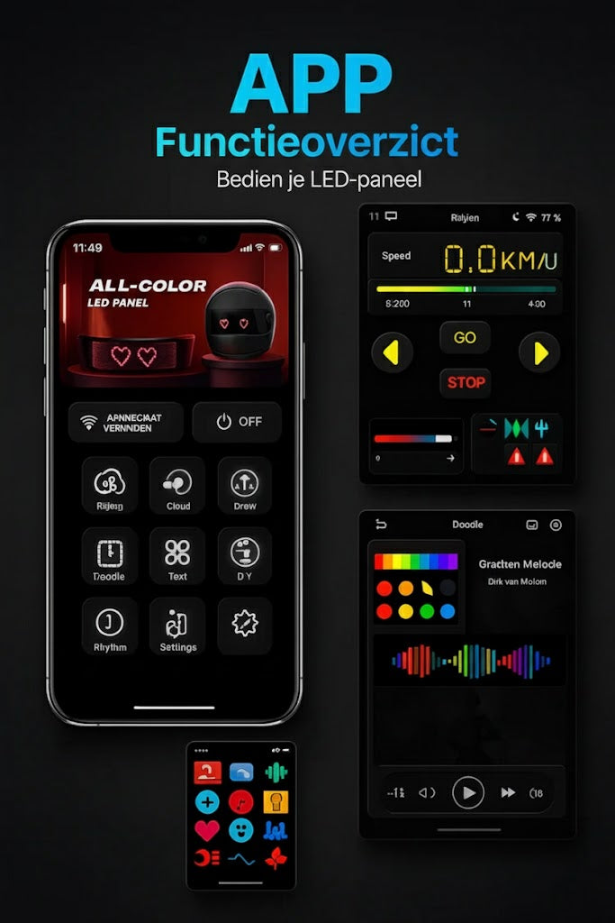 Pas je LED-display binnen enkele seconden aan: bewerk tekst, teken je eigen animaties, wissel rijmodi, stel de helderheid in of kies uit tientallen presets.De interface is snel, intuïtief en speciaal ontworpen voor rijders die volledige controle willen zonder hun rit te onderbreken.• Maak aangepaste berichten en emoji’s• Verander kleuren, effecten en helderheid• Rijmodus met live-indicatoren• Tekenmodus voor je eigen ontwerpen• Synchroniseert direct via BluetoothJouw helm, jouw regels – laat je rit opvallen.