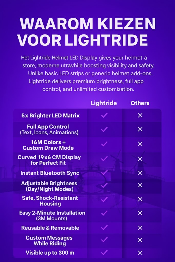 Met het Lightride helm-LED-display verandert je zichtbaarheid van nauwelijks opgemerkt naar onmogelijk te negeren.